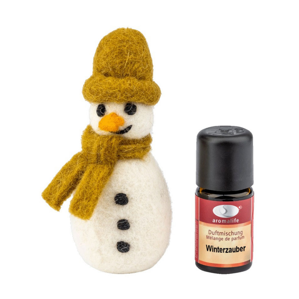 | Hinweise Das Set enthält einen Filz-Schneemann und eine Winterzauber Duftmischung 5ml. Ätherisches Öl und beduftete Filzfigur von Kindern fern halten. |