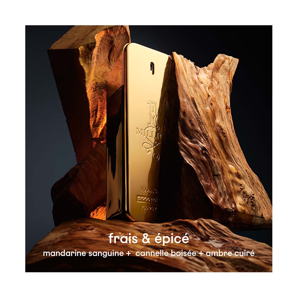 1 Million von Paco Rabanne ist ein Duft für Charmeure, die gerne alles auf eine Karte setzen. Die Komposition präsentiert sich als gewagtes Glücksspiel, in dem es nur um eines geht: Gold! Das magische Edelmetall ist ein Symbol maskuliner Macht, das seit jeher das Feuer der Leidenschaft im Mann entfacht. Und genau das tut das Aroma von 1 Million ebenfalls. Der Auftakt präsentiert sich mit Pfefferminze und Blutmandarine prickelnd und spritzig. Die unvergleichlich intensive Herznote aus Rose und Zimt mit warmen Lederakkorden weckt im stilvollen Spieler das unbändige Verlangen nach mehr.