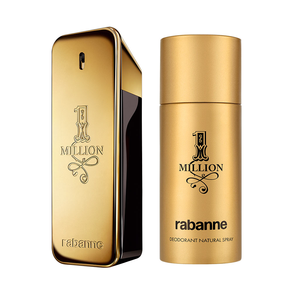 Dieses attraktive Geschenkset enthält ein Paco Rabanne 1 Million Eau de Toilette 100ml und einen Deodorant 150ml.