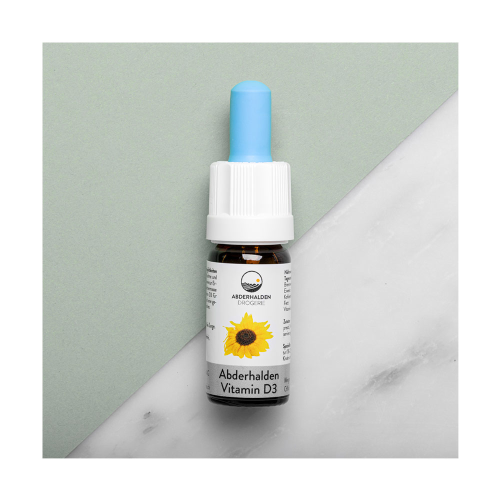Die Abderhalden Drogerie setzt auf die natürliche Kraft hochwertiger Rohstoffe. Unsere Vitamin D3 Tropfen werden in kaltgepresstem Sonnenblumenöl gelöst – das macht sie besonders gut aufnehmbar, da Vitamin D fettlöslich ist. Die Formulierung ist bewusst einfach gehalten: Nur drei Inhaltsstoffe für maximale Reinheit. Vitamin E dient als natürliches Konservierungsmittel. Die Tropfen sind glutenfrei, vegetabil, zuckerfrei und lactosefrei. Flüssiges Vitamin D kann vom Körper oft besser verwertet werden als Tabletten oder Kapseln.
