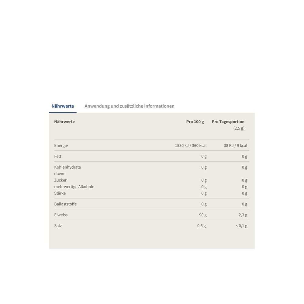 | Inhaltsstoffe 100% reine bioaktive Kollagenpeptide |