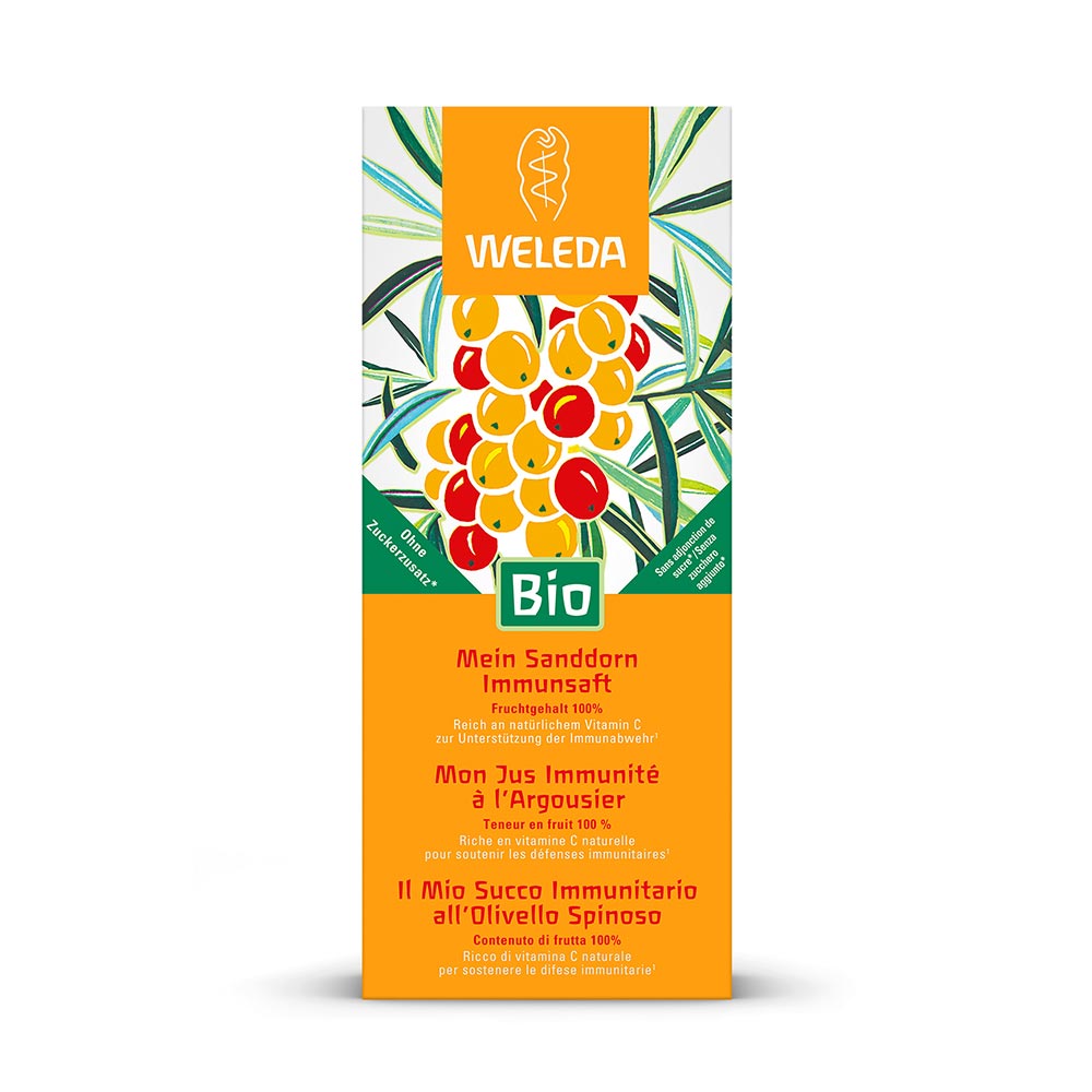 Der Sanddorn Immunsaft wird aus frischen, sonnengereiften Sanddornbeeren schonend zu einem wohlschmeckenden Produkt verarbeitet. Dabei bleibt der natürliche Gehalt der Früchte erhalten. Die Sanddornbeere ist reich an Vitamin C und weiteren wertvollen Vitalstoffen.