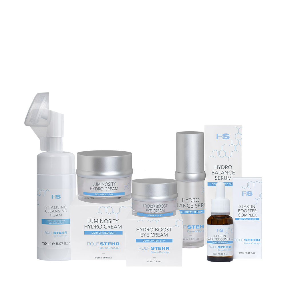 Das innovative Pflegekonzept DEHYDRATED SKIN von Rolf Stehr kombiniert eine revolutionäre Kombination aus 3-fach Hyaluronsäure, hydrolysierter Hyaluronsäure und Niacinamiden, um die Haut intensiv mit Feuchtigkeit zu versorgen und von innen heraus zu regenerieren. DEHYDRATED SKIN - das Pflegesystem für pralle, hydratisierte Haut mit jugendlicher Frische.