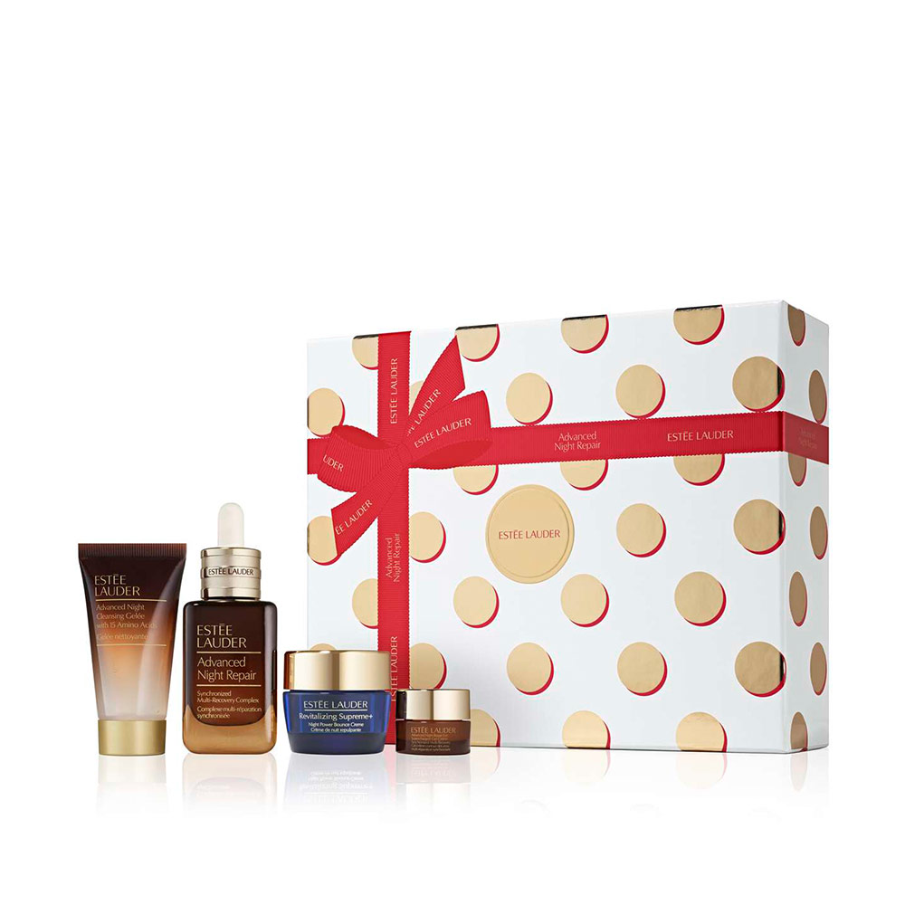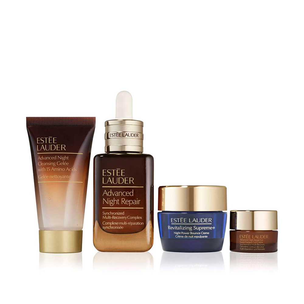 Hinweise Diese Set enthält: 1 Advanced Night Repair Synchronized Multi-Recovery Complex, (Originalgrösse 50ml), 1 Advanced Night Cleansing Gelée (Reisegrösse 30ml), 1 Advanced Night Repair Eye Supercharged Gel-Creme (Reisegrösse 5ml), 1 Revitalizing Supreme+ Youth Power Creme (Reisegrösse 15ml) |