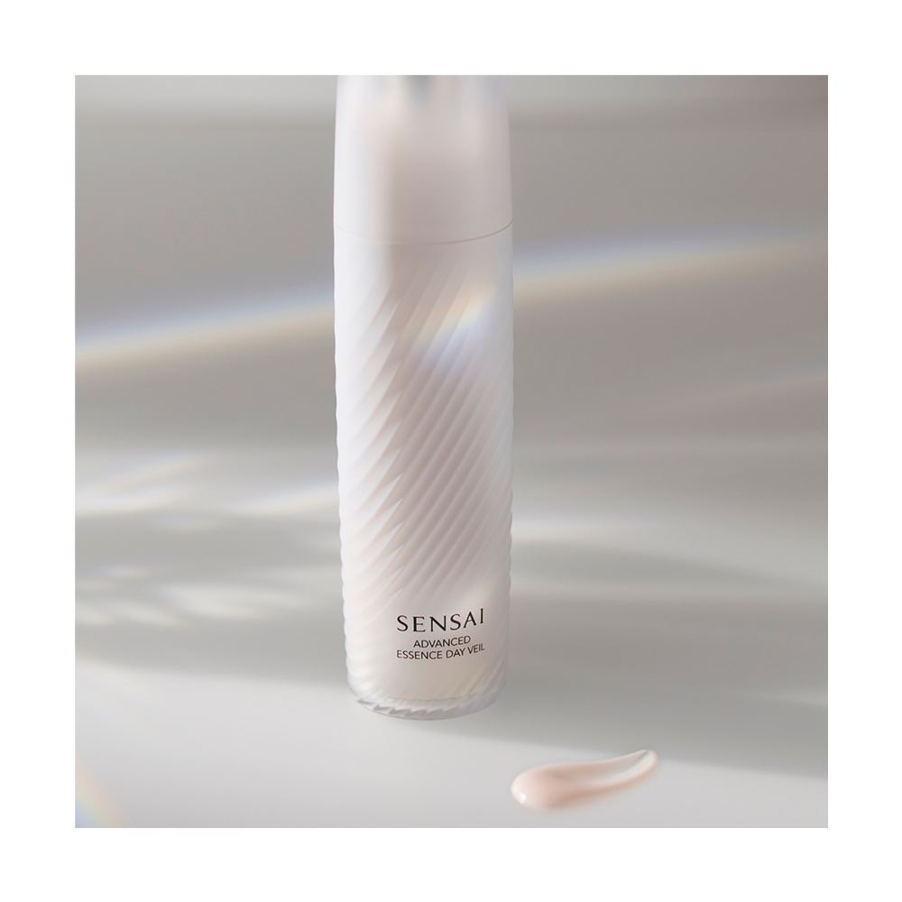Essence Day Veil - Eine Anti-Ageing-Tagesessenz mit UV-Schutz Faktor 50. Die einzigartige Formulierung vereint die charakteristische Koishimaru Seide EX mit dem Firming Boost Complex von Sensai, um die Hautelastizität zu verbessern. Die Lamella UV‑Formel mit SPF 50 schützt vor der täglichen Sonneneinstrahlung, die zu sichtbarer Hautalterung führt. Die leichte und seidige Textur verbindet sich sofort mit der Haut und sorgt für eine straffe und geschmeidige Haut, ohne Spannungsgefühl oder Trockenheit. Diese leichte und dennoch intensiv pflegende, seidige Essenz ist eine Wohltat für die tägliche Hautpflege und bildet den abschliessenden Schritt Ihrer Hautpflege‑Routine. Ergänzen Sie Ihre Saho Doppel‑Befeuchtungs‑Pflege, indem Sie die Advanced Day Veil SPF50 in Ihr morgendliches Hautpflegeritual integrieren. Ihre Haut bleibt damit vor der täglichen UV-Strahlung geschützt und bewahrt die natürliche Schönheit.