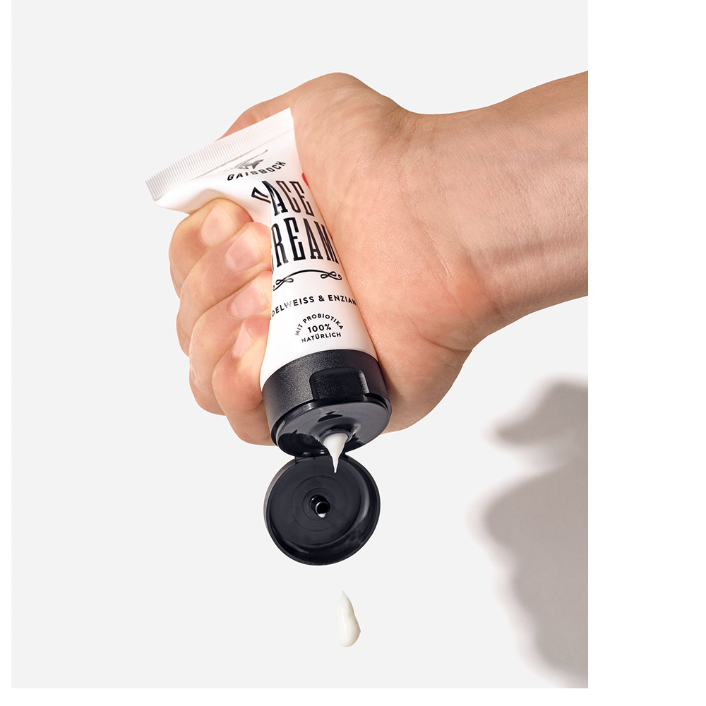 Neue Energie für strapazierte Männerhaut. Die Gaisbock Face Cream bewahrt Deine Haut vor dem Austrocknen. Stärkt die natürliche Hautbarriere. Wirkt beruhigend, reinigend, tonisierend. Und vor allem: klinisch erwiesener Anti-Aging-Effekt. Mit der Kraft von Probiotika und natürlichen Wirkstoffen, wie Edelweiss, Enzian und Aloe Vera.