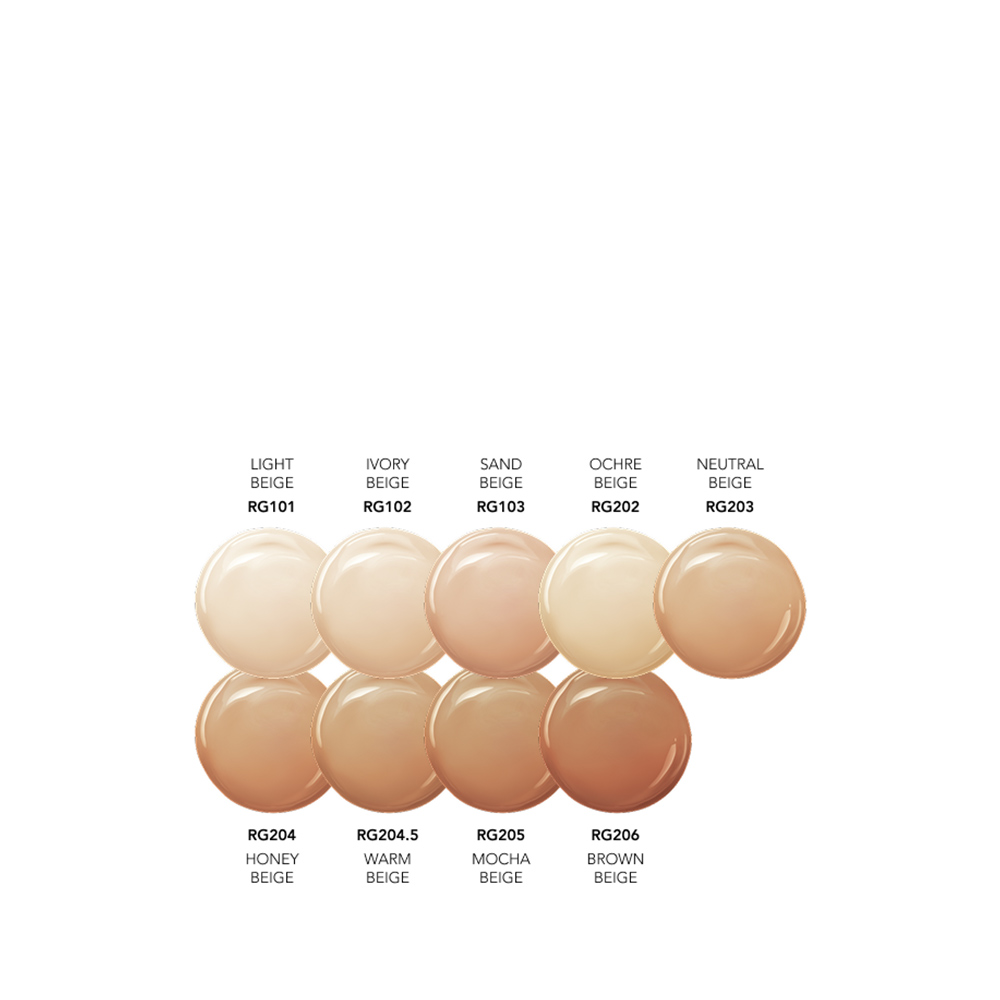 INCI Aqua, Methyltrimethicon, Titandioxid, Dipropylenglykol, Dimethicon, Diphenylsiloxyphenyltrimethicon, Alkohol, hydriertes Polyisobuten, Glycerin, Propylenglykoldicaprylat, Polysilicon‑9, Maltit, Diphenyldimethicon, PEG/PPG‑18/18 Dimethicon, Dimethicon/Vinyldimethicon‑Crosspolymer, Sorbitanisostearat, Bornitrid, Aluminiumhydroxid, Phenoxyethanol, Natriumchlorid, Trimethylsiloxysilikat, Dinatriumstearoylglutamat, Aluminiumoxid, Acetylglucosamin, Glimmer, Parfum, Butylenglykol, hydrolysierte Seide, Tetramethylacetyloctahydronaphthaline, Citrus Aurantium Bergamia‑Schalenöl, Linalylacetat, Citronellol, Trimethylbenzolpropanol, Zinnoxid, Dioscorea Panthaica‑Wurzelextrakt, Tocopherol, Serica‑Pulver, kann (+/‑) enthalten: CI 77491, CI 77492, CI 77499 |