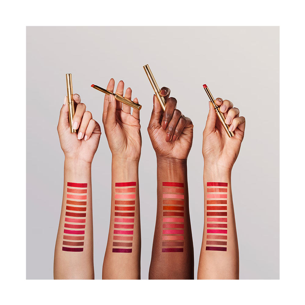 Der schlankeste Lippenstift aller Zeiten von Estée Lauder für die präziseste Anwendung. Umschmeichelt jede Kurve. Formt jede Kontur. Attraktive Hülse mit charakteristischer Riffelung in einem glamourösen Goldton. Für 12 Stunden Halt, den ganzen Tag. Höchster Komfort. Seidig-glatt und matt. Kühn und farbecht: verblasst nicht, läuft nicht aus, verfärbt sich nicht. Setzt sich nicht in Falten ab. Ohne Abbröckeln. Spendet augenblicklich Feuchtigkeit. Modelliert und definiert mit einem dramatisch dimensionalen matten Finish. Die aussergewöhnlich elegante Silhouette ermöglicht eine gute Kontrolle.